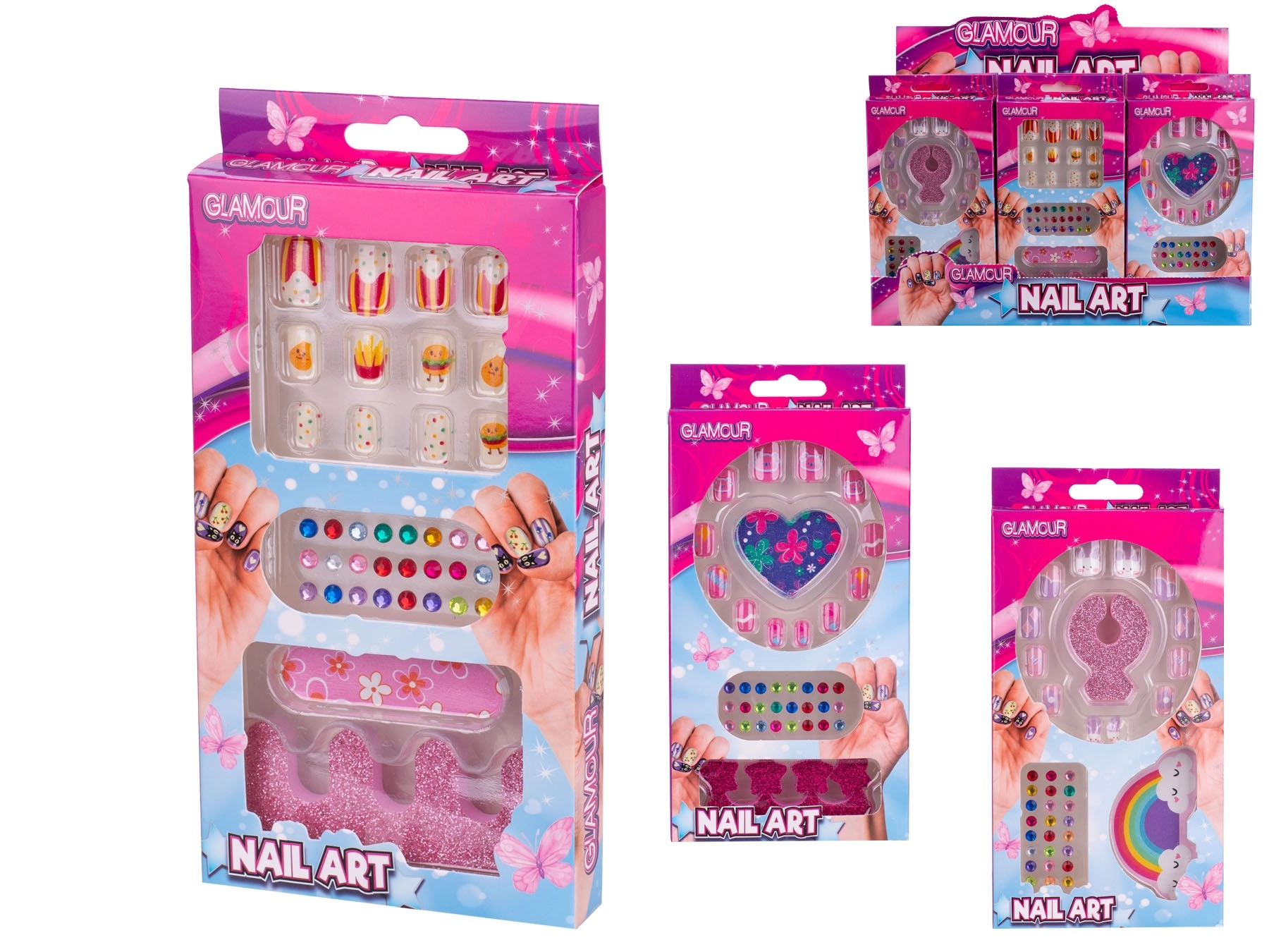 Il set è disponibile in tre design giocosi – con motivi di cibo, cuori e arcobaleno. Grazie alla facile applicazione senza l’uso di smalto, i bambini possono provare in sicurezza vari stili e sviluppare la loro fantasia. La confezione compatta è facile da riporre e trasportare, ideale per viaggi, visite e feste per bambini.