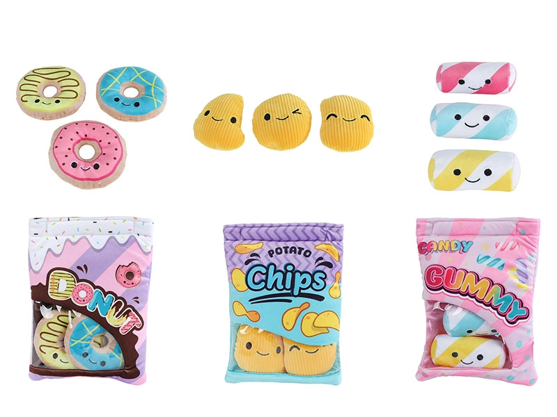 All'interno di ogni sacchetto si trova uno spuntino di peluche: puoi scegliere tra le varianti chips, donuts e gelatine. Con dimensioni di circa 16 × 8 × 6 cm si adatta perfettamente alle manine e, con una lunghezza di 21 cm, si trasporta facilmente. È anche un regalo pratico per ogni occasione.