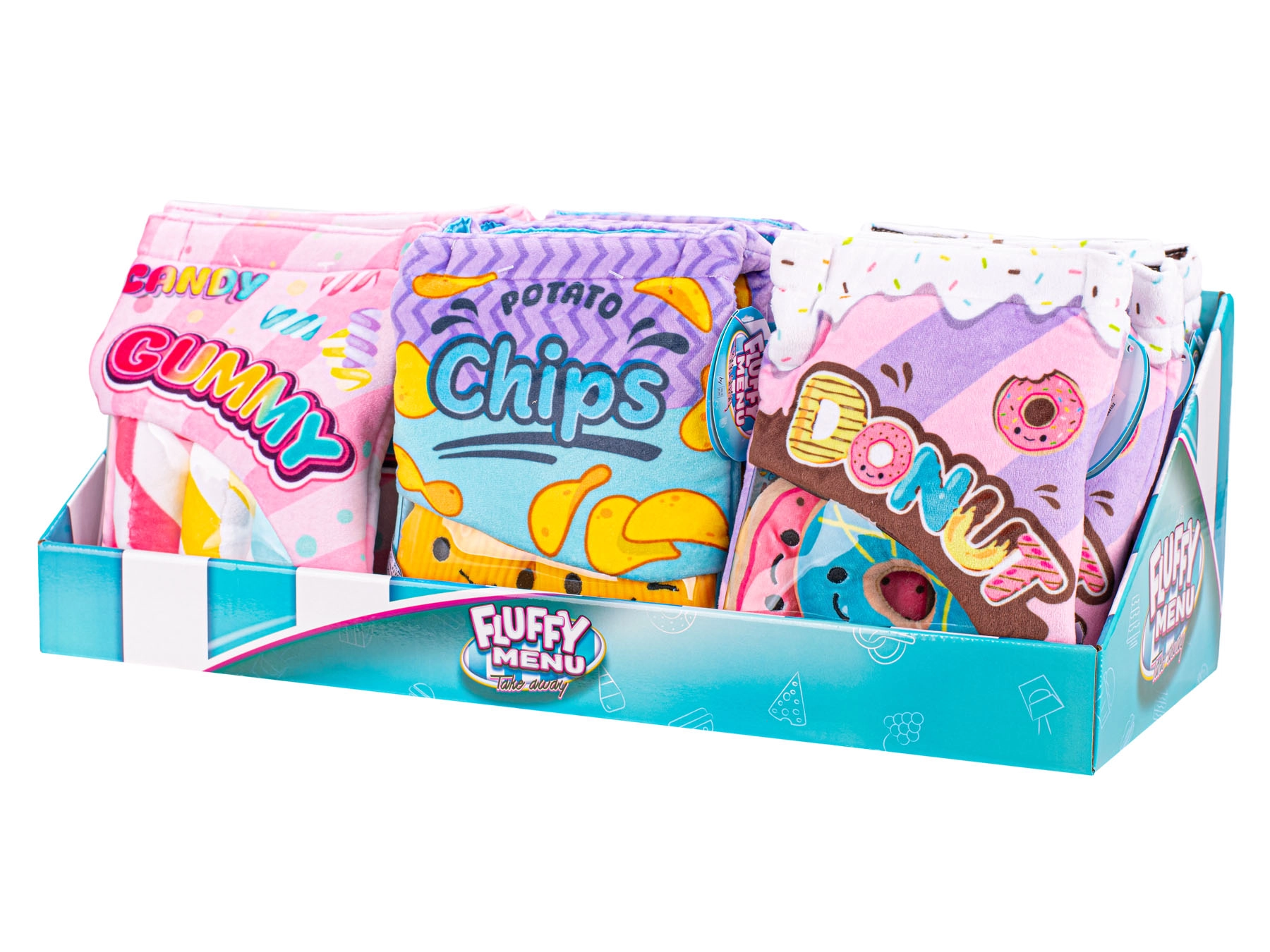 Il grazioso sacchetto di peluche Fluffy Menu con faccine allegre offre ai bambini divertimento, morbidezza al tatto e gioco sicuro fin dalla nascita. In ogni sacchetto si nasconde uno spuntino di peluche nelle varianti chips, donuts o gelatine. Grazie alle dimensioni compatte entra facilmente nello zainetto o nel passeggino ed è quindi ideale per i viaggi.