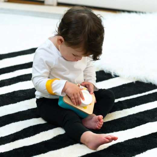 Grazie alle dimensioni compatte, alla superficie in legno ispirata al metodo Montessori e al sicuro laccetto, è ideale a casa e in viaggio. Il giocattolo sviluppa la motricità fine, la coordinazione mano-occhio e aiuta i bambini a comprendere causa ed effetto, tutto sotto forma di gioco divertente.