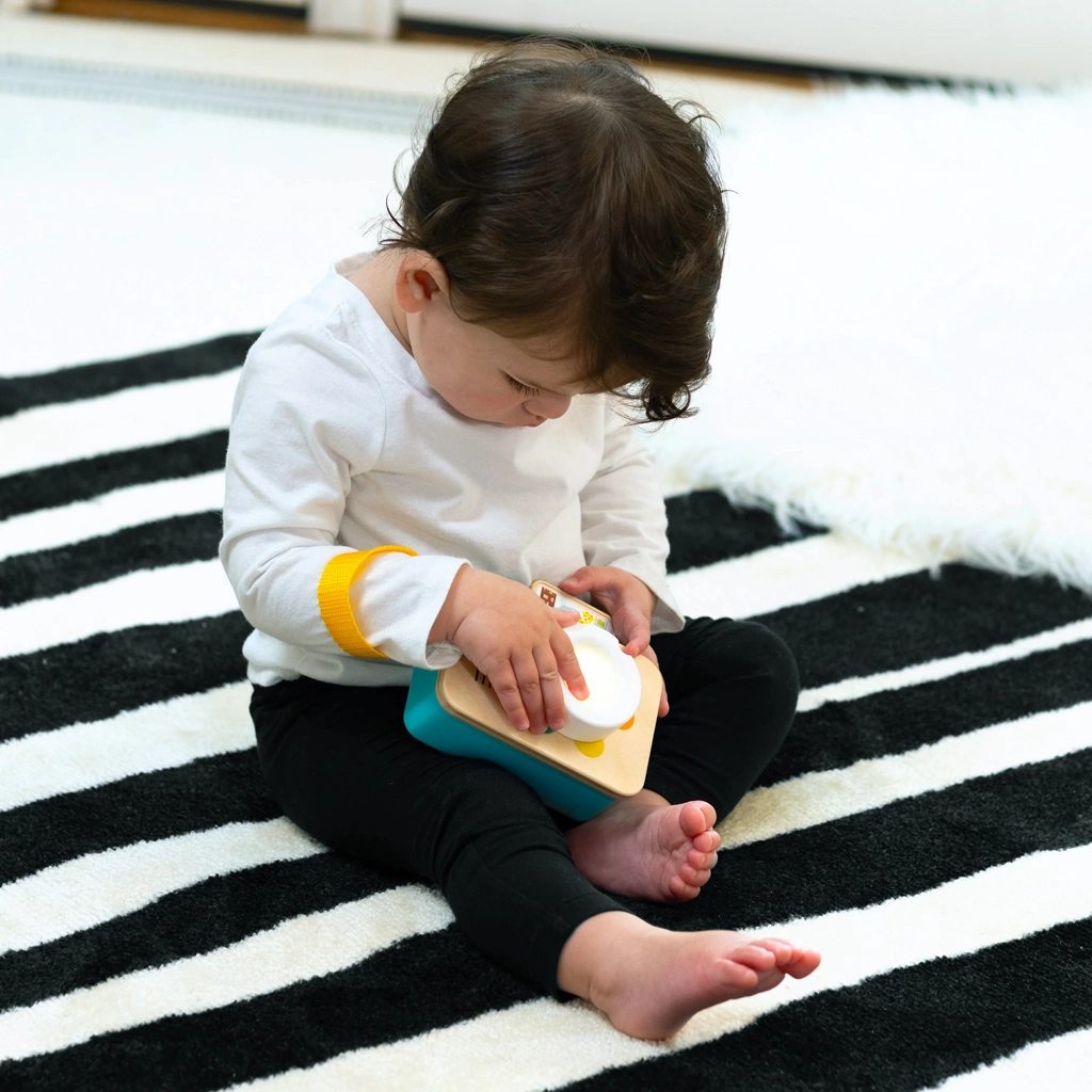 Scopri l'apprendimento divertente con la fotocamera interattiva BABY EINSTEIN x HAPE, che combina effetti luminosi, melodie e apprendimento dei colori in 4 lingue. I bambini esercitano la motricità fine, comprendono causa ed effetto e grazie al comodo laccetto da polso possono portare il giocattolo ovunque. La superficie in legno con certificazione FSC e il design retrò si adattano perfettamente alle manine.