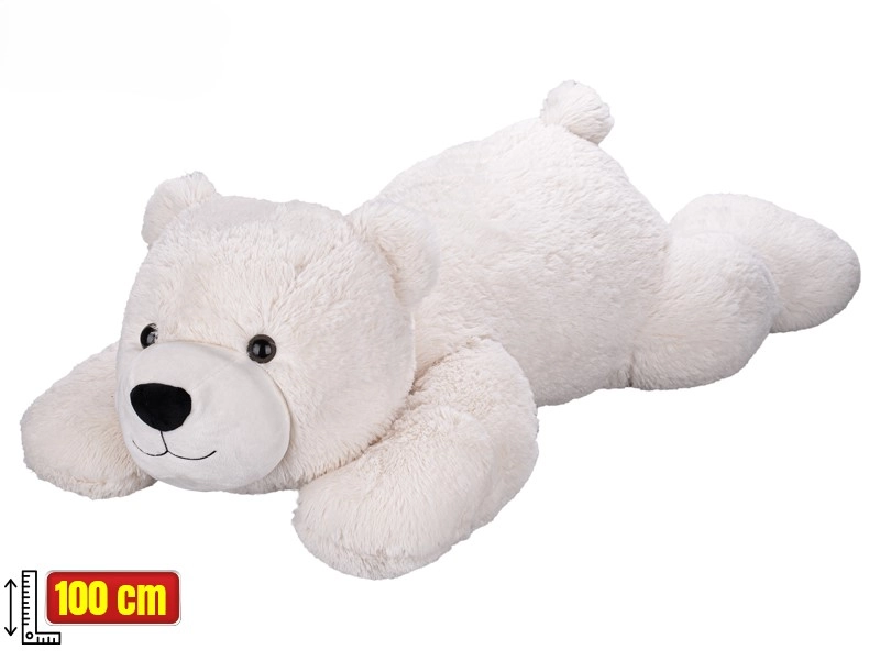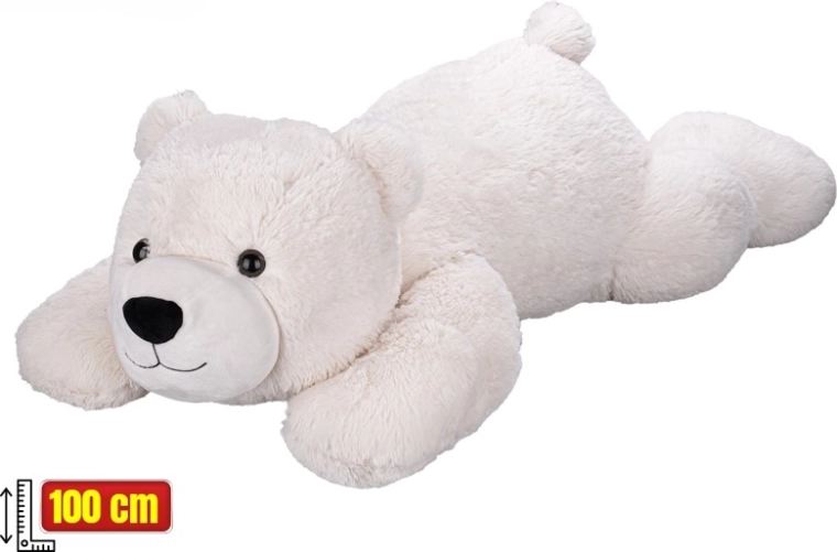 Questo orso polare di peluche oversize farà felice ogni amante dei giocattoli morbidi. Grazie alla posizione distesa è ideale per abbracci, relax e come elemento di stile per l’arredamento della cameretta. Il suo aspetto realistico e il tocco soffice trasmettono una piacevole sensazione di comfort e tranquillità a ogni coccola.