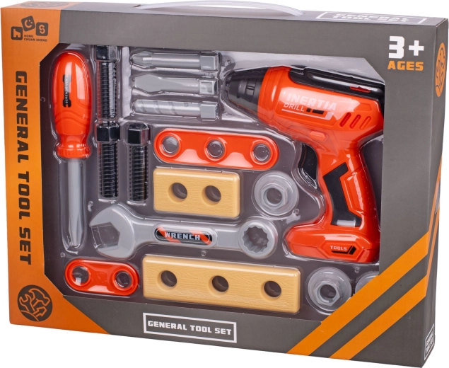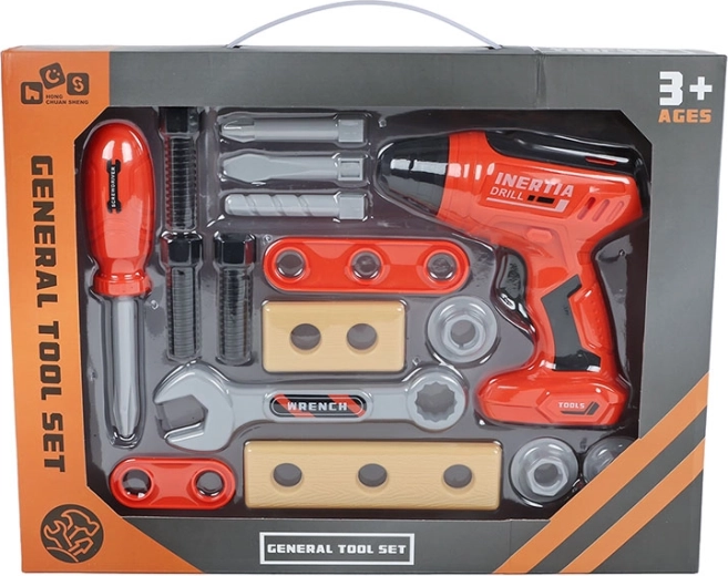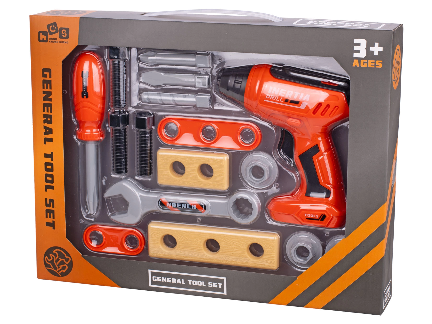 Set divertente e sicuro per piccoli fai-da-te, contiene 16 pezzi, tra cui una trapano in plastica alimentato da 2× batterie AA, un cacciavite e una chiave. I bambini allenano facilmente la motricità fine e la creatività, il tutto riposto in una pratica scatola per un facile trasporto. Adatto ai bambini dai 3 anni.
