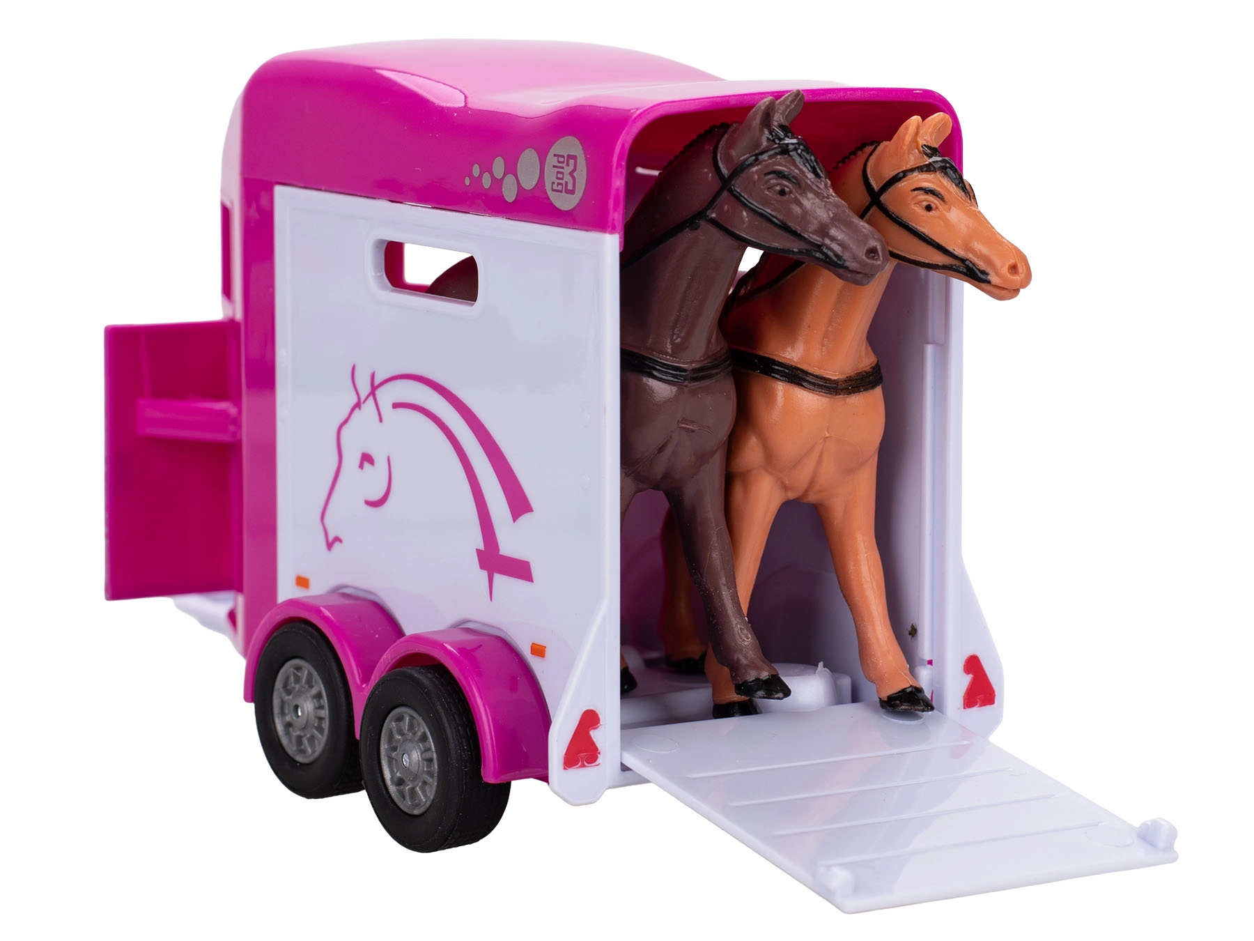 Il rimorchio è progettato per il carico e il trasporto sicuri dei cavallini e completa alla perfezione gli scenari dei bambini, dalla fattoria alle gare di equitazione. Il modello è compatibile con comuni figurine di cavalli (non incluse nella confezione) e con le sue dimensioni di 28 cm risalta in ogni collezione.