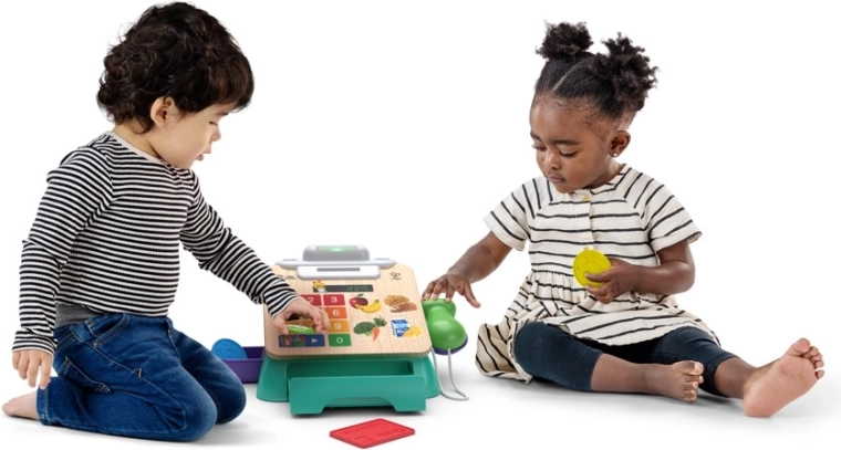 Inclusi scanner manuale, carta e 3 monete, che incoraggiano l’immaginazione nel gioco del negozio. Le dimensioni compatte e il vano integrato nel cassetto facilitano il trasporto e il riordino. La combinazione di legno certificato FSC e plastiche di qualità è sicura, resistente e ideale per il gioco quotidiano.