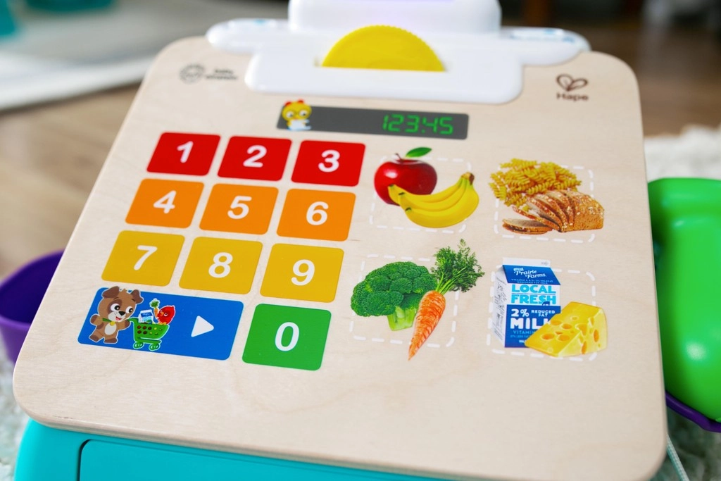- Divertimento role-play: suoni realistici della cassa, beep dello scanner e inserimento delle monete.