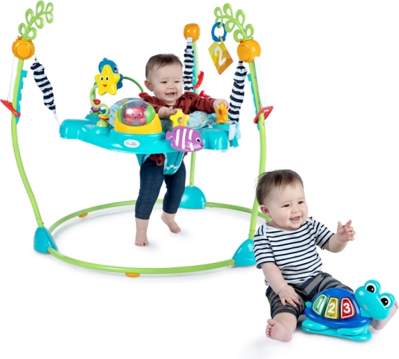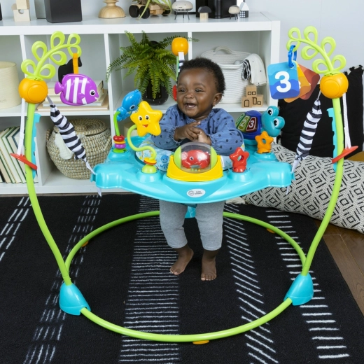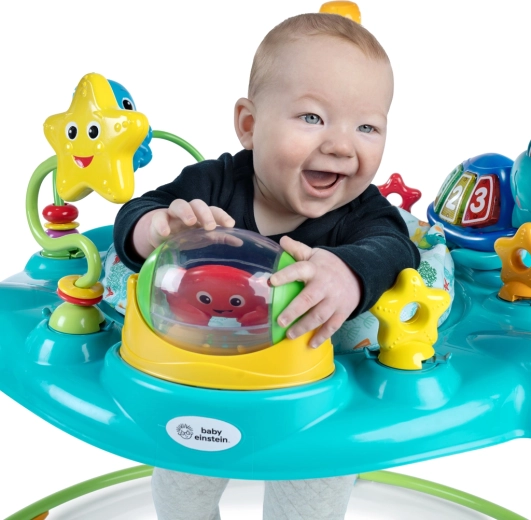 Curiosity Cove trasforma ogni giorno in un’avventura: il bambino può saltare, girarsi e scoprire in sicurezza grazie alla seduta girevole a 360° e alle colorate attività a tema marino. Il pannello interattivo con luci e suoni, le perline, il pesciolino, il granchio con sfera rotante e le schede illustrate favoriscono motricità fine, sviluppo sensoriale e prime conoscenze.