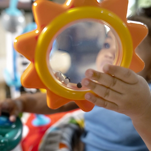 Oltre 20 melodie e suoni, effetti luminosi e l’apprendimento di forme, colori e numeri in inglese, spagnolo, francese e tedesco motivano il bambino all’esplorazione e rafforzano lo sviluppo sensoriale.