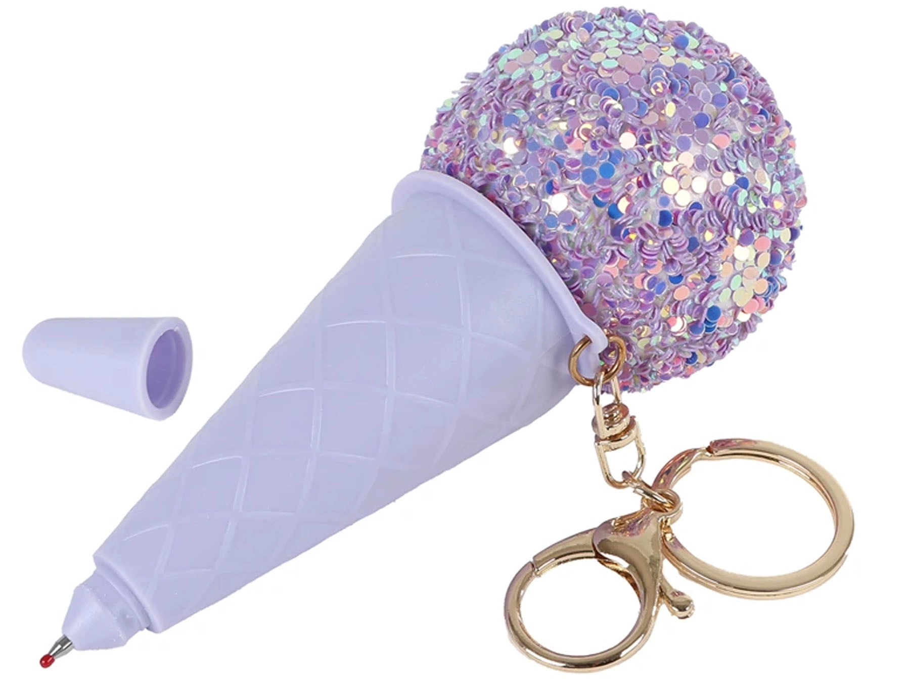 Arricchisci il tuo stile quotidiano con un accessorio originale: portachiavi a forma di gelato con penna integrata. Leggero, resistente e sempre a portata di mano: ideale per appunti in movimento e come tenera decorazione. L'aspetto viola scintillante dona un tocco deciso alle tue chiavi, allo zaino o alla borsa.