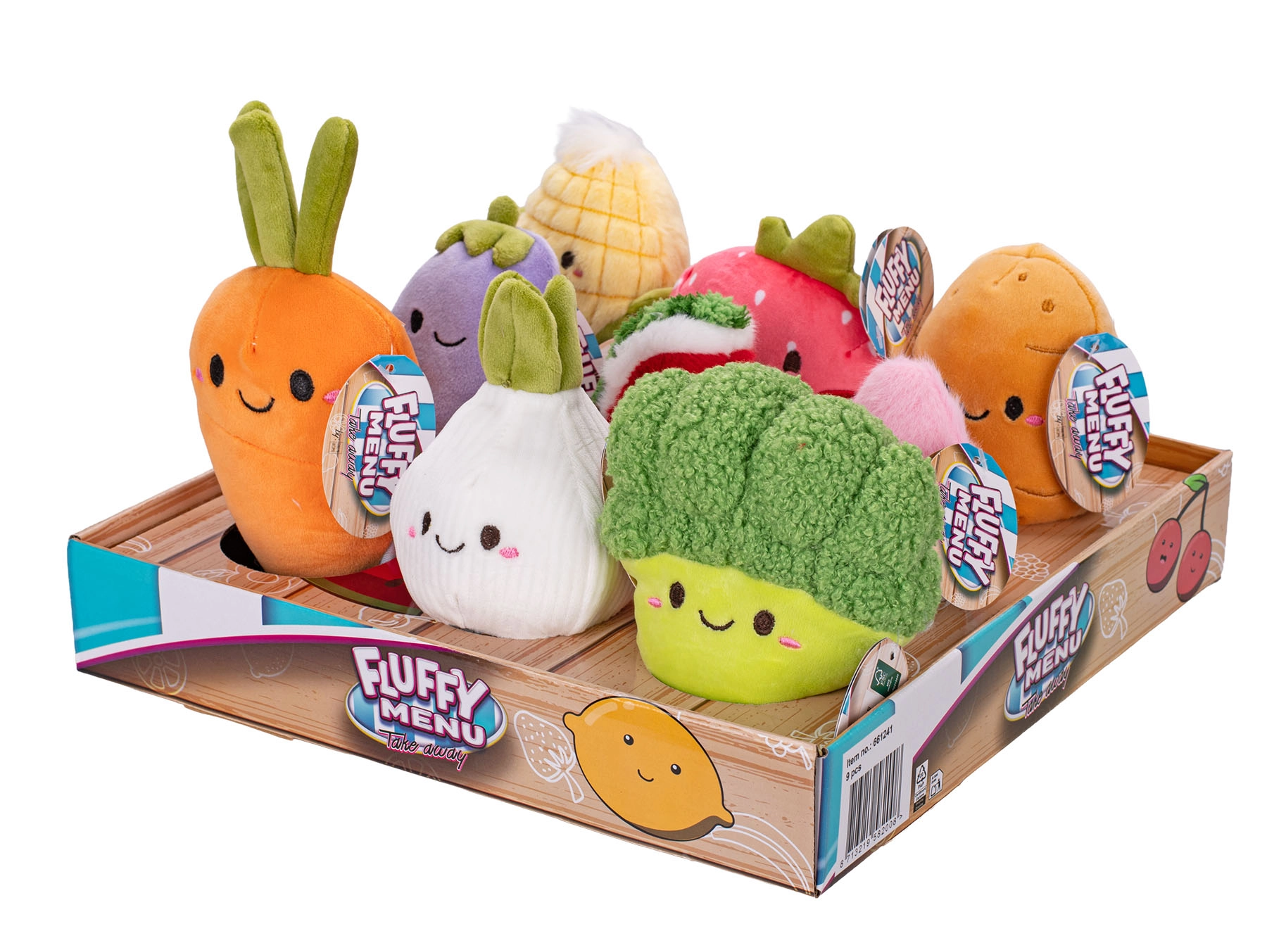 Disponibili in 9 varianti: broccoli, mais, patata, anguria, cipolla, fragola, melanzana, carota e ravanello. Ogni giocattolo è fornito singolarmente, portando un gioioso momento di sorpresa all’apertura. Le espressioni simpatiche e i colori intensi sviluppano la fantasia e motivano i bambini a imparare divertendosi l’alimentazione sana.