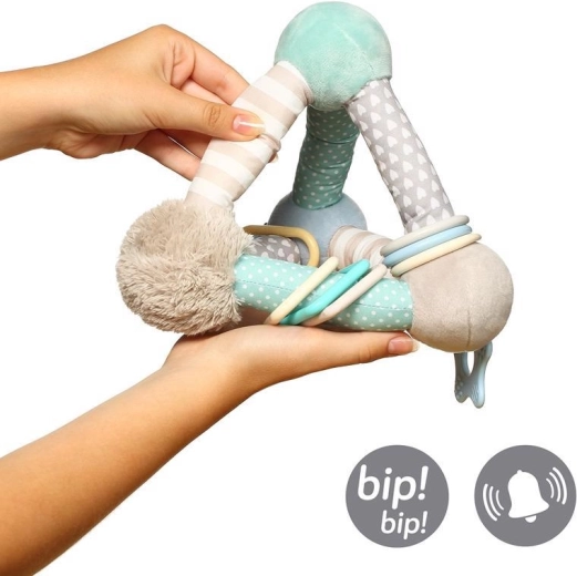 Il design minimalista nei toni pastello si adatta a qualsiasi cameretta. Il giocattolo è ideale per i viaggi: l’anello a C consente di fissarlo facilmente al passeggino o al seggiolino auto. Supporta immaginazione, capacità cognitive e coordinazione mano-occhio con un gioco sicuro e divertente.