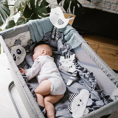 Gli elementi in bianco e nero catturano l’attenzione dei neonati e aiutano la concentrazione nel periodo chiave dei primi mesi.