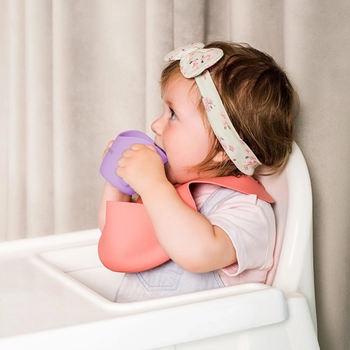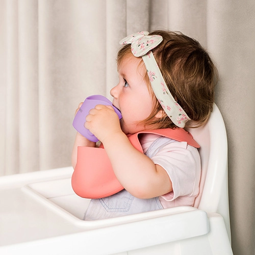 La tazza da allenamento BabyOno è progettata in base alle capacità anatomiche e motorie dei bambini piccoli. Supporta il modo naturale di bere da un contenitore aperto, risultando la transizione ideale dal biberon o dalla tazza antigoccia. Il bordo inclinato e i manici ampi ed ergonomici consentono al bambino di adattare angolo e ritmo della bevuta, riducendo il rischio di rovesciamenti e favorendo il corretto movimento della mandibola.