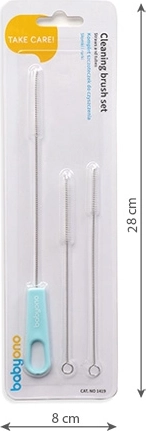 Il set di spazzole BabyOno è la scelta ideale per una pulizia accurata delle parti interne di cannucce, beccucci, tettarelle e dei componenti più piccoli di tazze trainer e biberon. Tre diverse dimensioni ti permettono di scegliere esattamente la spazzola che meglio si adatta al tuo tipo di tazza o bottiglia.