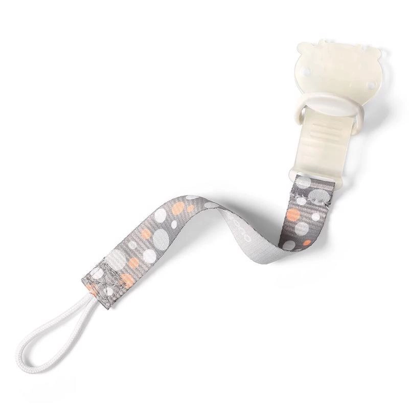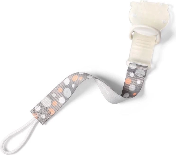 Clip affidabile con cinturino in tessuto che impedisce la caduta e lo smarrimento del succhietto in casa e all’aperto.