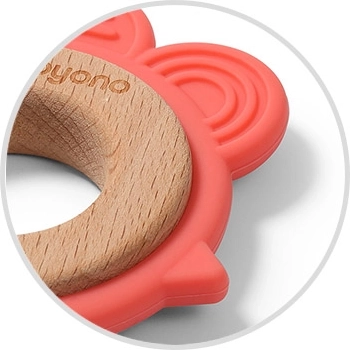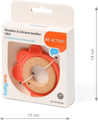 Il massaggiagengive BabyOno Hen unisce legno di faggio naturale e morbido silicone alimentare per un massaggio gengivale delicato ma efficace. I rilievi testurizzati offrono sollievo immediato, favoriscono la percezione sensoriale e facilitano la presa da parte delle piccole mani. Il motivo animale è attraente per i bambini e invoglia al gioco.