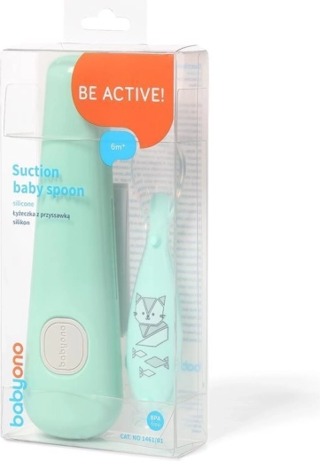 La ventosa integrata mantiene il cucchiaio in posizione verticale e impedisce il contatto con superfici sporche.