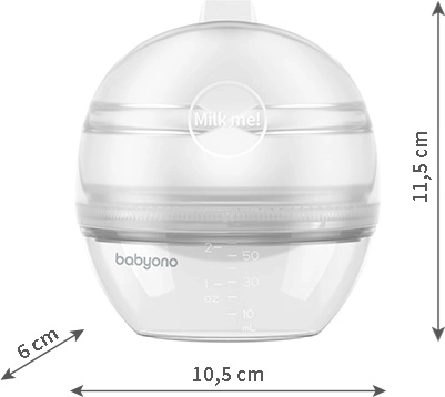 La forma arrotondata in silicone morbido si adatta perfettamente al seno e protegge la pelle dalle irritazioni. La struttura igienica e sicura, senza BPA, è composta da soli tre elementi che si smontano e puliscono rapidamente. La pratica scala graduata facilita il controllo del latte raccolto (capacità 60 ml).