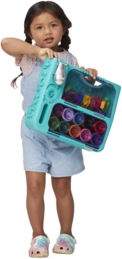 In questo set da viaggio universale, i bambini troveranno tanti accessori e i classici barattoli di pasta da modellare Play-Doh! Qui ci sono la Fabbrica del Divertimento e il Salone di Parrucchieri, tanti stampini e tantissimi piccoli strumenti: non abbiate paura di dare libero sfogo alla fantasia. C’è spazio a sufficienza per tutto: potete mettere i barattoli di pasta negli appositi alloggiamenti, gli utensili e gli stampini nel vano portaoggetti, il cui coperchio ha una texture con cui divertirsi a creare fantastici motivi. La confezione completa è pratica: ci sta tutto il necessario e, grazie alla maniglia compatta, potete portarla comodamente in viaggio e rendere il weekend più divertente, magari dalla nonna!