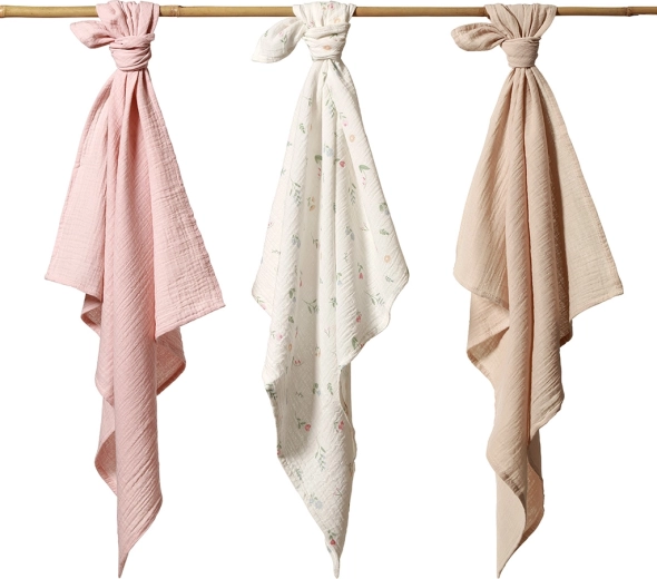Ogni pezzo misura 70 × 70 cm ed è ideale come fascia, asciugamano dopo il bagnetto, tappetino per il cambio, lenzuolino per passeggino o lettino, oppure come soffice copertina. Sono pratiche a casa, durante le passeggiate e in ospedale – e rappresentano un regalo perfetto per i neo-genitori.