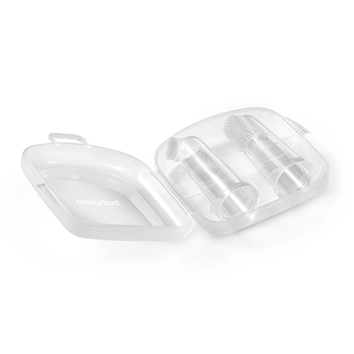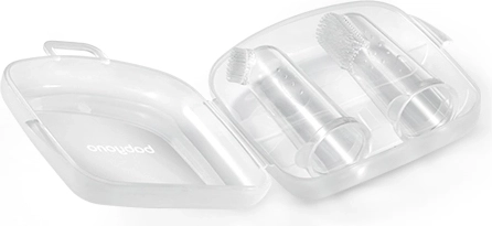 - 2× spazzolino in silicone da dito, 1× astuccio igienico