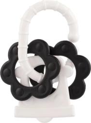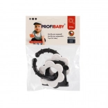 Pratici massaggiagengive in bianco e nero in 4 forme con sonaglino integrato e comoda impugnatura, favoriscono lo sviluppo della vista e della motricità fine sin dalla nascita. Realizzati con materiali sicuri per la salute, adatti all’uso quotidiano.
