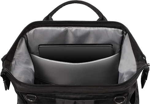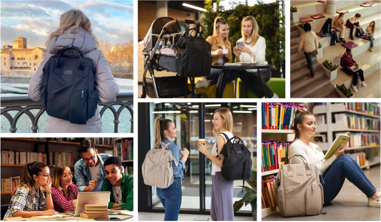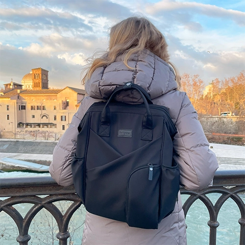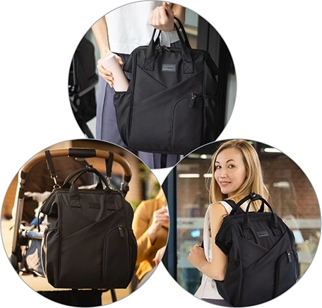Porta lo zaino sulle spalle, a mano oppure fissalo al passeggino per avere le mani libere. Spallacci regolabili e manici corti garantiscono comfort in ogni situazione.