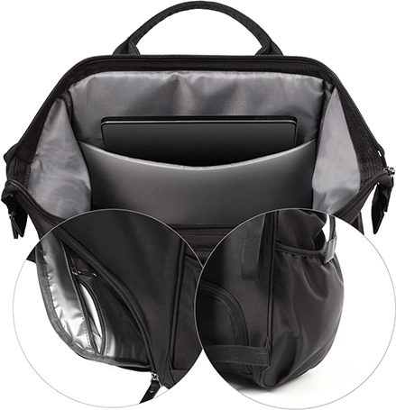 Scopri un compagno affidabile per ogni giorno: lo zaino fasciatoio BABYONO Modern Style in elegante nero. Grazie alla struttura intelligente contiene tutto l’essenziale – pannolini, biberon, giochi, libri, tablet o notebook – rimanendo al tempo stesso ordinato e facilmente accessibile. La zip a doppio cursore e la tasca frontale studiata ad hoc garantiscono accesso rapido anche agli oggetti sul fondo.