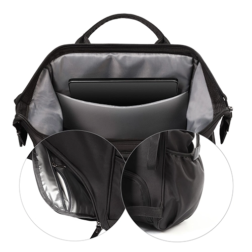 Il materiale impermeabile e leggero protegge il contenuto in caso di maltempo, mentre gli spallacci regolabili e i manici corti assicurano comfort in ogni utilizzo. Dettagli pratici come portachiavi/porta-ciuccio, tasca termica per la bottiglia, sacchetto impermeabile per oggetti bagnati e scomparto imbottito per tablet/notebook portano l’organizzazione a un livello superiore. Nella confezione è inclusa anche una fasciatoio portatile più spesso per i viaggi.
