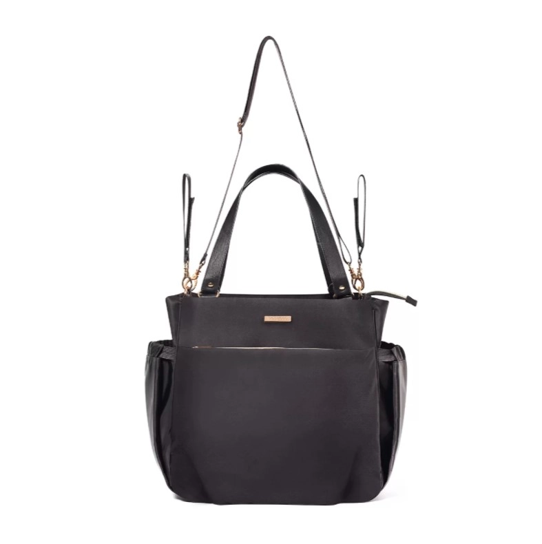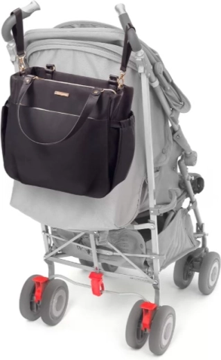 Comodi manici, tracolla rimovibile e cinghie laterali per il facile fissaggio al passeggino garantiscono massima flessibilità e mani libere.
