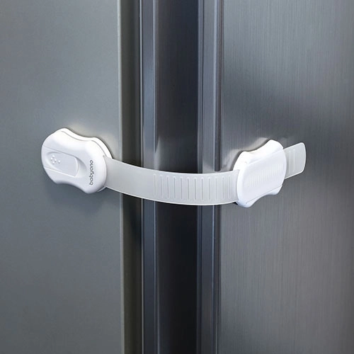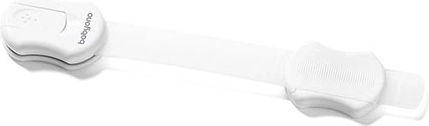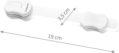 La cinghia flessibile e la lunghezza regolabile consentono di mettere in sicurezza armadi, cassetti, frigoriferi e coperchi del WC: ideale per un baby-proofing completo.