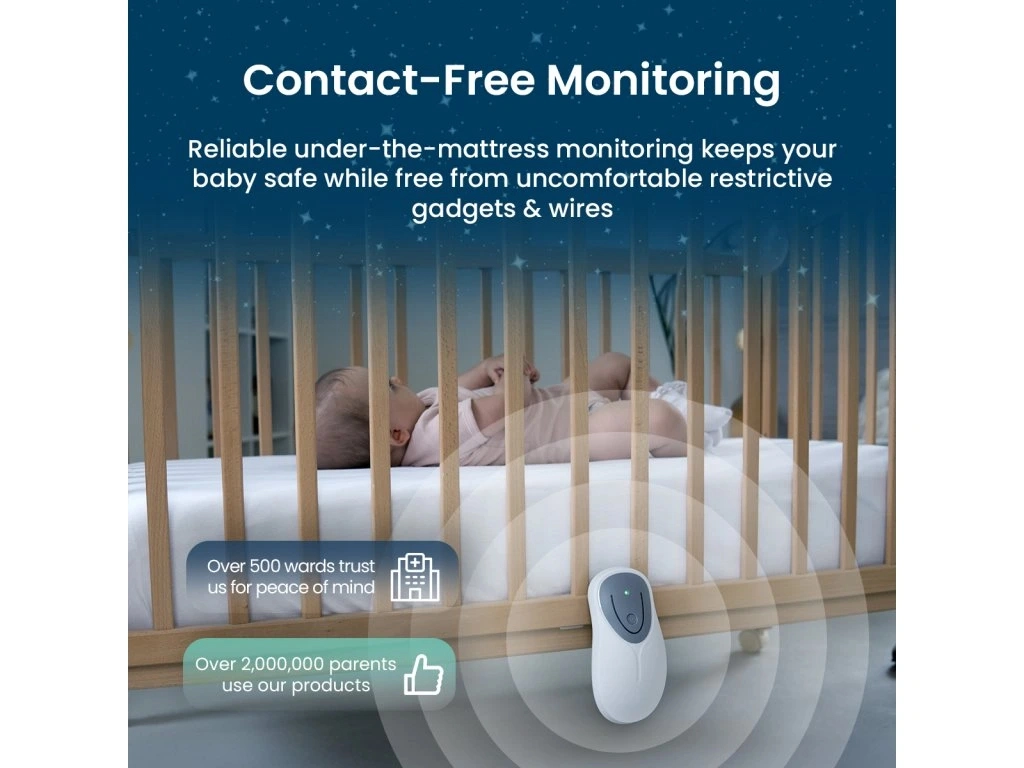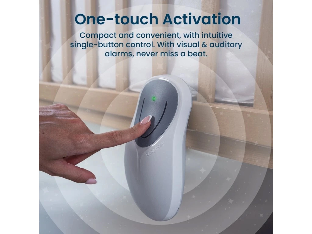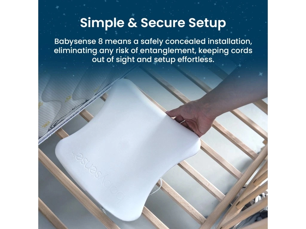 Il dispositivo è clinicamente testato e soddisfa i rigorosi standard della Direttiva 93/42/CEE. È compatibile con materassi in schiuma, fibra di cocco, lattice e traspiranti fino a uno spessore di 10 cm. Quando il neonato inizia a muoversi di più, è possibile collegare una seconda piastra sensorizzata per coprire l’intera superficie del lettino: Babysense 8 cresce così insieme al vostro bambino.