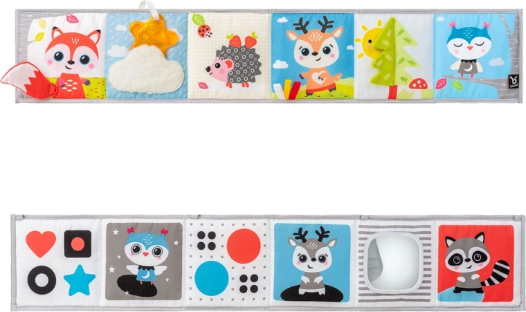 Il libricino attivo bifacciale BENBAT Amici della foresta cresce con il tuo bebè. Il lato ad alto contrasto (bianco e nero) stimola idealmente la vista del neonato, mentre il lato colorato con allegri animaletti sviluppa attenzione e concentrazione nelle fasi successive dello sviluppo. Materiali morbidi, zone fruscianti, nastrini tattili e un grande specchio invitano all’esplorazione e supportano la motricità fine e grossolana.