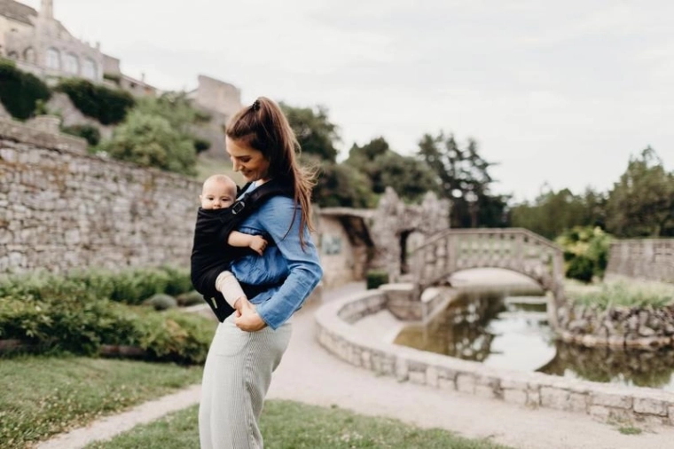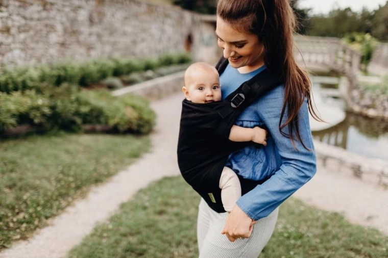 Il marsupio è pensato per il porto pancia a pancia e, grazie alle fibbie robuste e al cinturone ampio (60–145 cm), distribuisce il peso tra spalle e fianchi. La regolazione intuitiva assicura un posizionamento sicuro del neonato e del bambino in crescita e comfort anche durante portage prolungati.