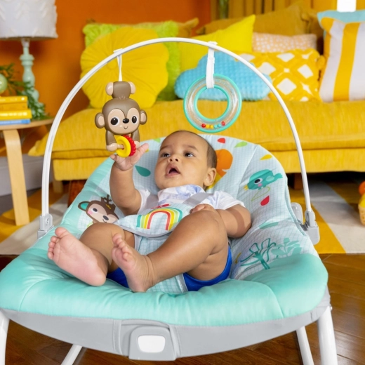 Calma il neonato e intrattieni il bambino con la sdraietta 2 in 1 Bright Starts Wild Vibes, che puoi passare in un attimo dalla modalità dondolante a quella stazionaria. Offre vibrazioni calmanti con un solo pulsante, 2 inclinazioni, una sicura cintura a 5 punti e un'archetta removibile con giochini per sviluppare la motricità fine. Grazie alla portata fino a 18 kg cresce con il bambino, dal neonato al bimbo più grande.