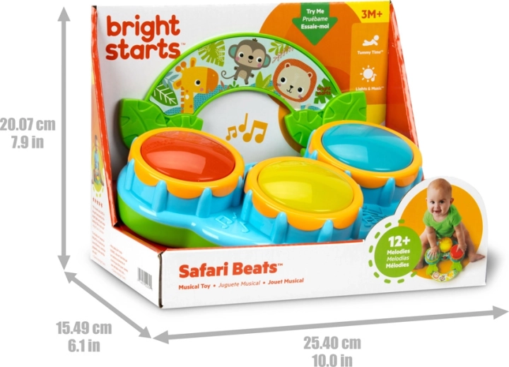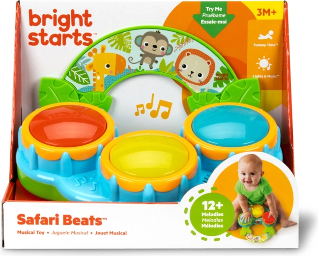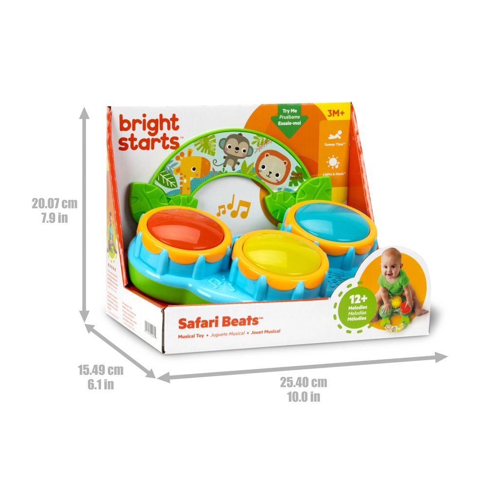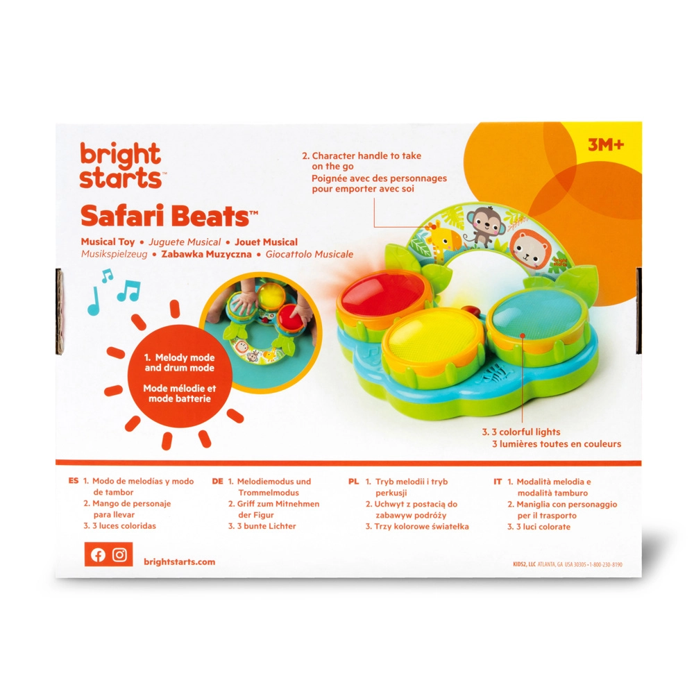 Avvia il primo concerto del tuo bebè con il giocattolo Bright Starts Safari Beats. Tre tamburi luminosi e colorati, due modalità di gioco – percussioni e melodie e facile trasporto grazie alla maniglia supportano lo sviluppo sensoriale e la motricità già dai 3 mesi.
