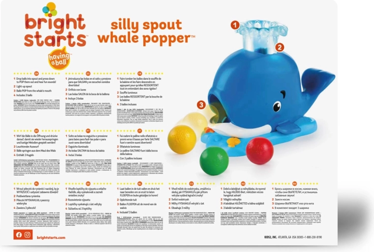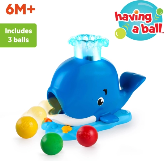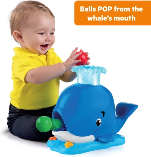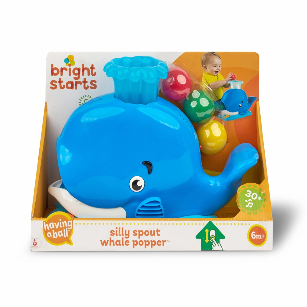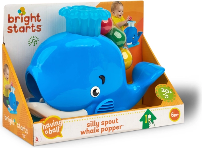 Scopri un divertimento senza fine con il giocattolo per bambini BRIGHT STARTS Balena Popper per bimbi dai 6 mesi. Basta inserire le palline nell’apertura sulla testa della balena, premere e si accendono le luci e partono le melodie, mentre le palline saltano fuori dalla bocca di nuovo all’esterno. Il giocattolo incentiva il gioco ripetuto, sviluppa la motricità fine e grossa e insegna il rapporto causa–effetto. Nella confezione sono incluse 3 palline colorate.