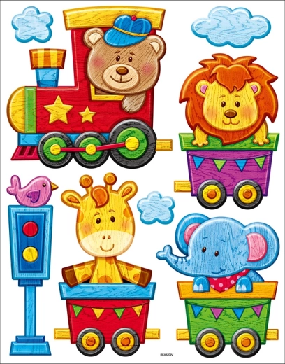 Dai libero sfogo alla fantasia! Il tenero trenino guidato da un orsetto trasporta elefante, giraffa e leone, completato da un semaforo, fumo dal camino e un uccellino sopra la locomotiva. Questa decorazione da parete porta in camera un'atmosfera giocosa di avventura e aiuta i bambini a conoscere il mondo degli animali.