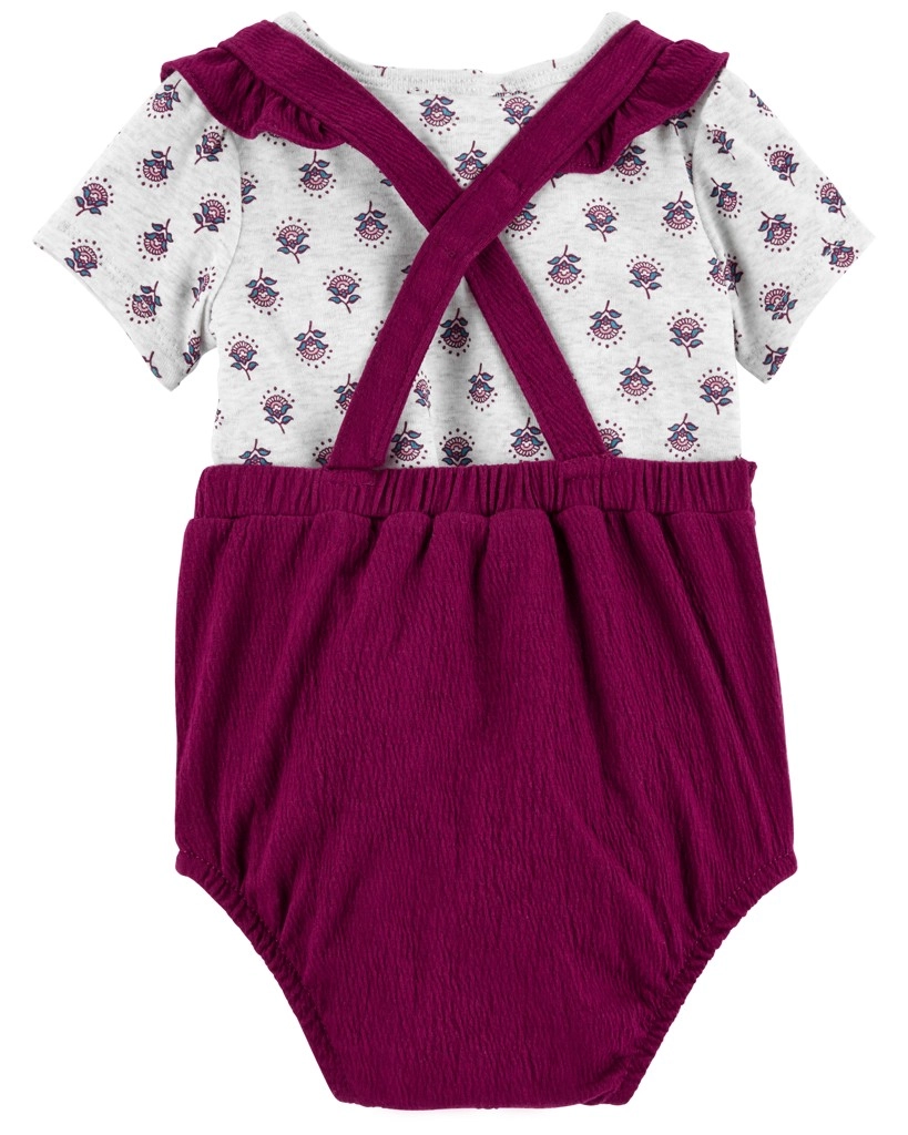 Questo set per bambina combina un morbido body a maniche corte con un vestitino con bretelle dal taglio a gonnellina in una moderna tonalità viola–magenta. Grazie al cotone soffice, l’outfit è piacevole sulla pelle del bambino e assicura comfort per tutto il giorno. I pratici automatici facilitano il cambio e le bretelle mantengono il vestitino in posizione.