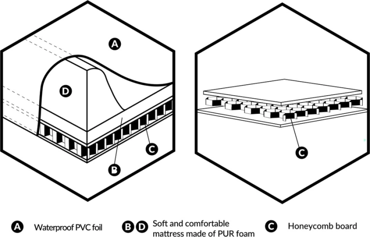 - Rispetta il pianeta: pannello a nido d’ape con anima in cartone riciclabile.