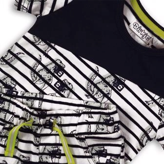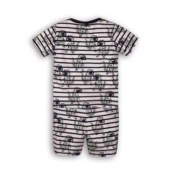 Le righe a contrasto e le simpatiche illustrazioni di dinosauri faranno felici i piccoli amanti della preistoria e donano all’outfit un aspetto originale.