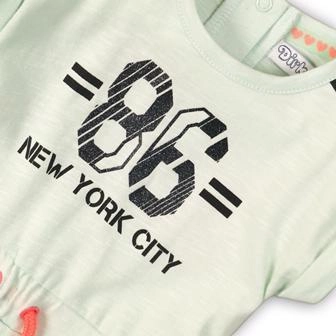 Elegante abito da bambina DIRKJE in colore menta, perfetto per l’uso quotidiano grazie al 100% cotone, morbido, traspirante e confortevole. Ideale per l’asilo, il parco giochi e le gite in famiglia: l’abito con motivo Joyful Lets Rock conquisterà i bambini.