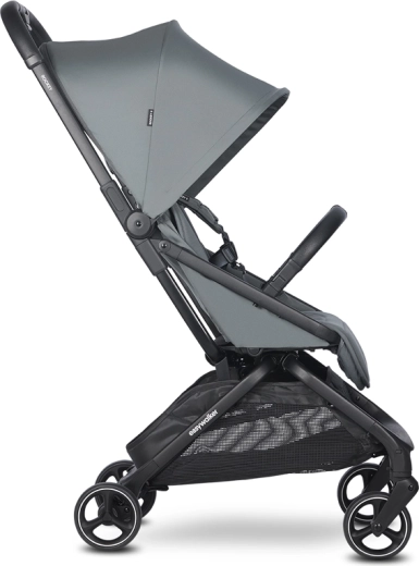 I materiali di qualità premium sono realizzati con plastiche riciclate, i rivestimenti sono facili da mantenere, il riduttore della seduta è rimovibile e lavabile. Il passeggino è compatibile con navicella e con ovetto (tramite adattatori), così lo usi dal primo giorno. Il pratico cestello portaoggetti, il manico alto, il paracolpi girevole e il poggiagambe regolabile completano il comfort quotidiano.