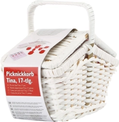 Il cesto in vimini bianco offre spazio di archiviazione per l'intero set, mentre la sua struttura robusta e l'elemento decorativo conferiscono un'autentica sensazione da picnic.