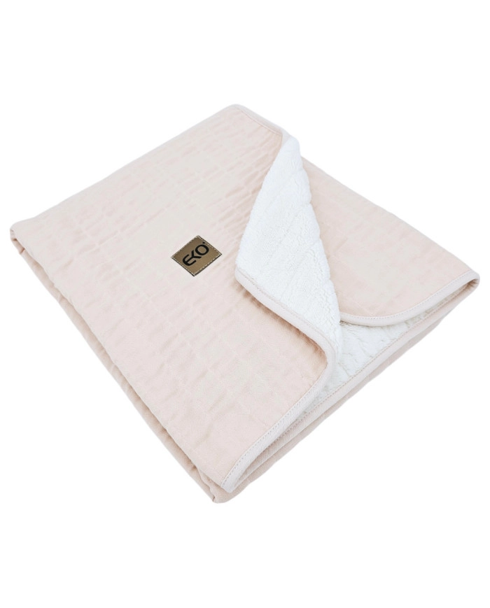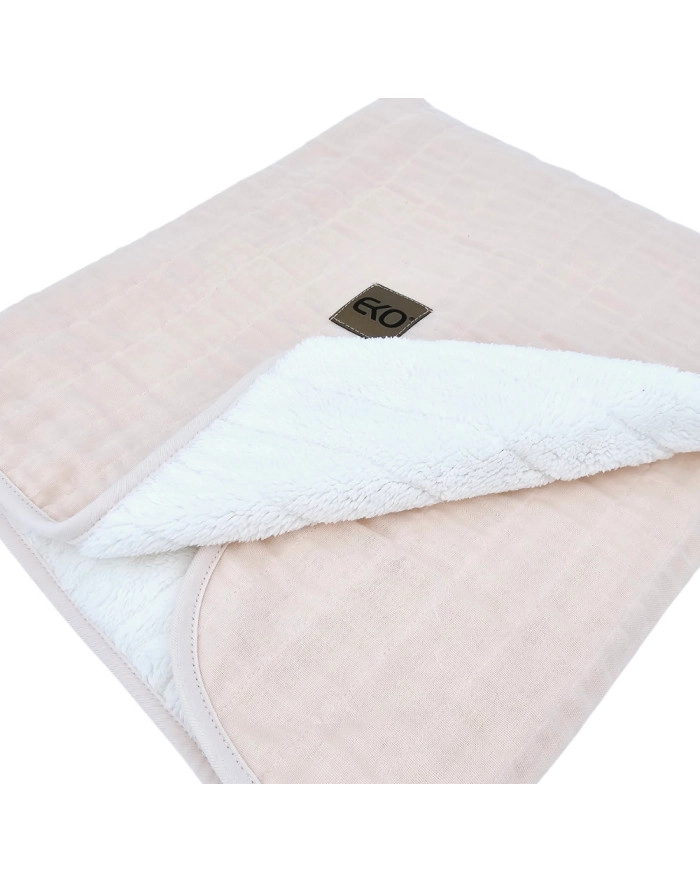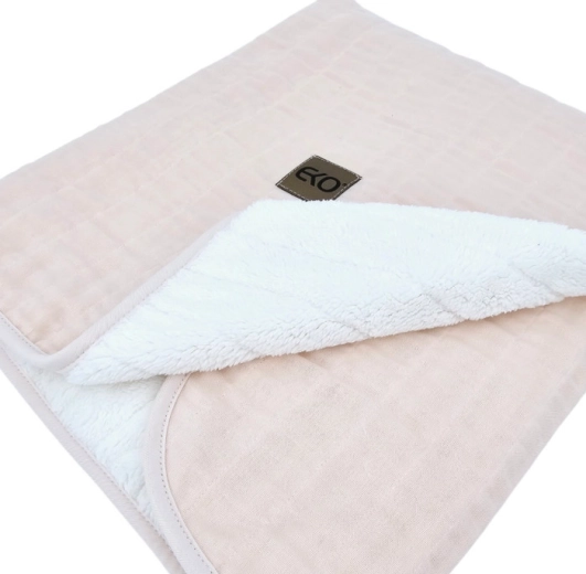 Questa coperta in mussola EKO in una delicata tonalità di rosa combina cotone 100% naturale sul lato esterno e una calda fodera in pelliccia (pile) in poliestere 100%. L’isolamento leggero ma efficace in fibra ipoallergenica garantisce un calore confortevole senza inutili ingombri. La coperta è facile da usare tutto l’anno – a casa, in viaggio e durante le passeggiate.