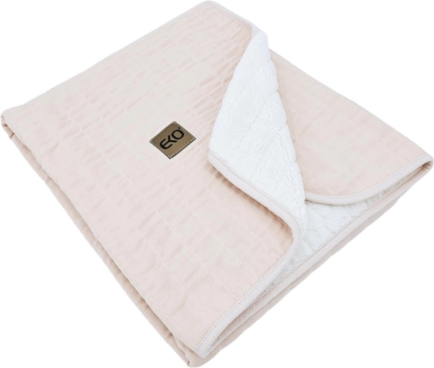 Coperta per bambini elegante e confortevole in cotone mussola con morbida fodera in pelliccia che offre calore, morbidezza e comfort nel lettino, nel passeggino e sul seggiolino auto. Grazie all'imbottitura ipoallergenica e alla struttura trapuntata è ideale per la pelle delicata dei bambini e come raffinato accessorio del corredo.