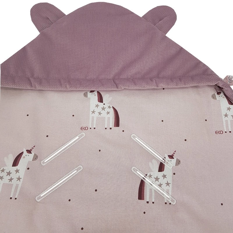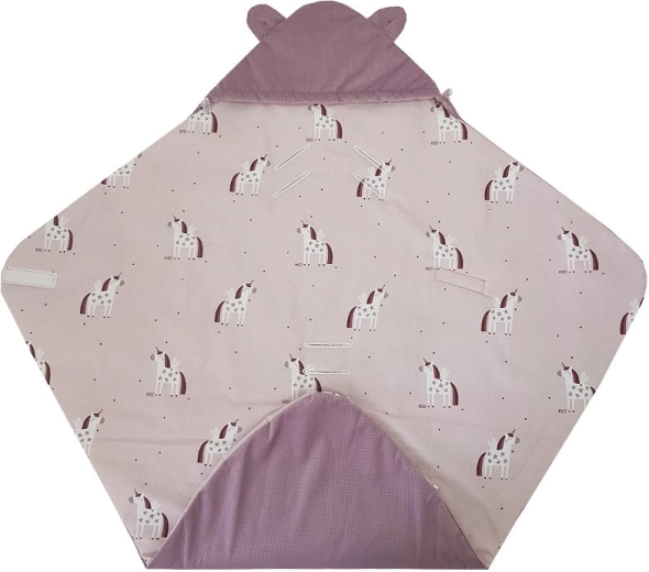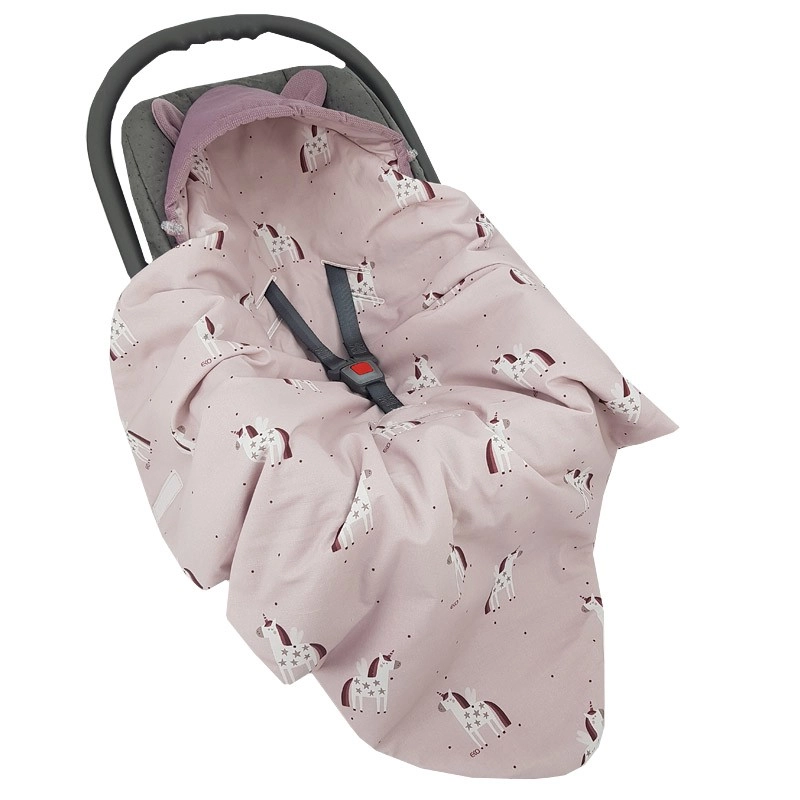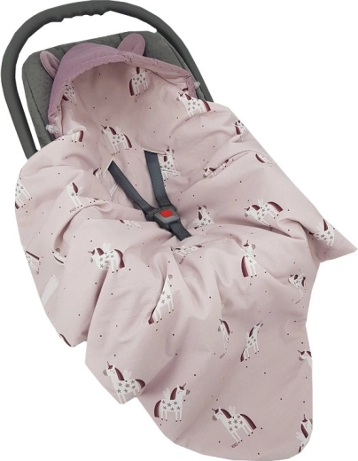 Pratico sacco avvolgente per seggiolino auto per bebè 3–18 mesi in delicato design rosa con motivo Unicorn. Combina una morbida superficie VELVET/MINKY, una piacevole fodera in cotone e un'imbottitura ipoallergenica e traspirante. Grazie agli aperture per le cinture di sicurezza il sacco si fissa facilmente senza slacciare le cinture e il bebè resta avvolto in calore e comfort. Standard termico 2,5 TOG per uso tutto l'anno.