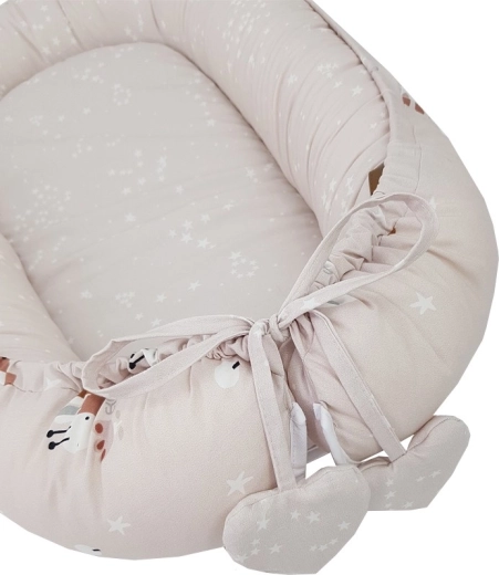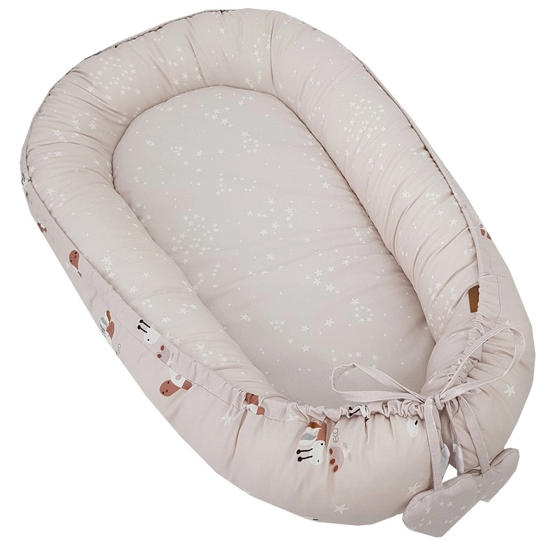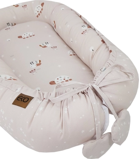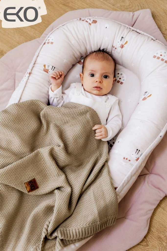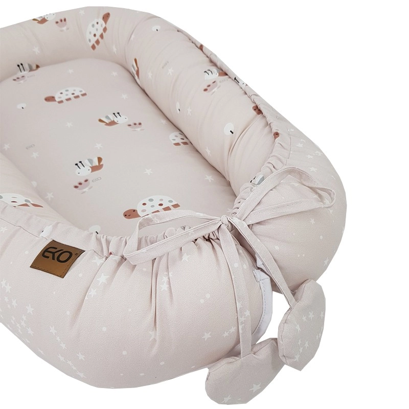 Il nido per neonati EKO è progettato per offrire il massimo comfort e tranquillità. La struttura double-face permette di cambiare rapidamente lo stile, mentre il morbido cotone 100% in superficie e la imbottitura in silicone ipoallergenica assicurano un tocco delicato e traspirabilità. I bordi alti aiutano a mantenere il bebè in uno spazio sicuro e facilitano il posizionamento su un fianco, particolarmente apprezzato in caso di reflusso.