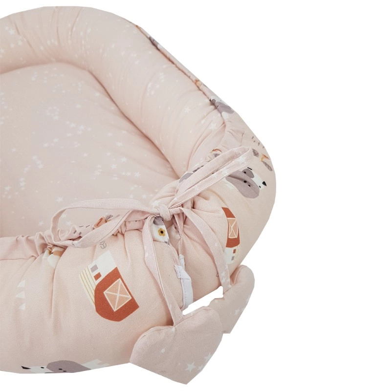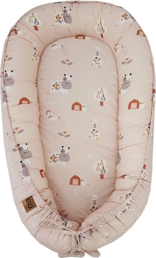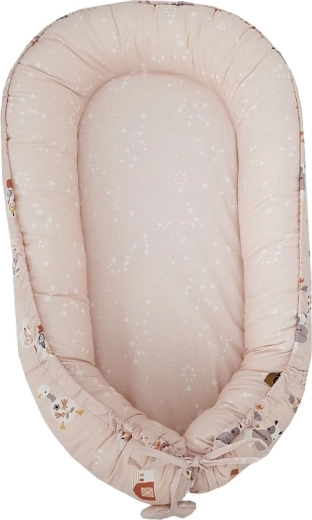 Cambia facilmente l’aspetto del giaciglio grazie ai due lati: il dolce motivo fattoria e le delicate stelline nella tonalità Powder Pink.