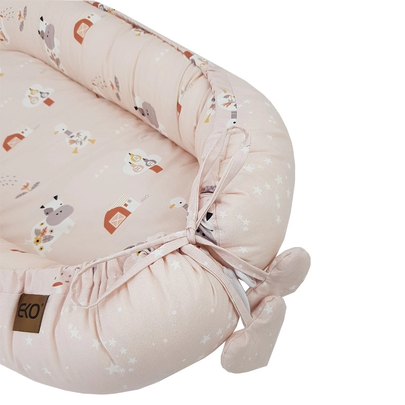 Il nido per neonati EKO My Farm Stars Powder Pink nelle dimensioni 90 × 60 cm è pensato per un sonno tranquillo e un comodo relax sotto la tua supervisione. Gli alti bordi aiutano a creare una sensazione di abbraccio avvolgente e facilitano il posizionamento su un fianco, utile soprattutto in caso di reflusso. Il morbido rivestimento in cotone e l’imbottitura soffice e ipoallergenica garantiscono un contatto delicato con la pelle e comfort in ogni posizione.